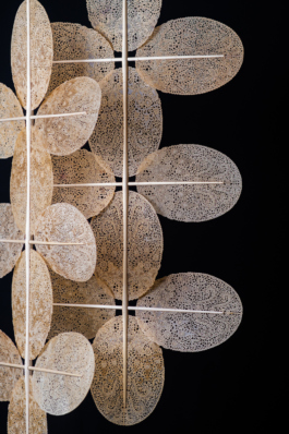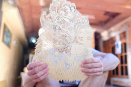 Le paravent Kayon est une ode à l’art balinais du wayang kulit (théâtre d’ombres), une ancienne forme d’art du conte. Le kayon («Arbre de Vie»), une représentation abstraite de l’univers, est une figure essentielle utilisée par le marionnettiste pour ouvrir et clore chaque représentation. Les motifs sophistiqués du kayon, ciselés dans le cuir de vache de manière experte par l’équipe d’artisans du maître marionnettiste Ketut Sudiana, subliment la qualité presque translucide du matériau pour créer une œuvre d’art mouvante.