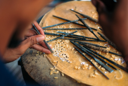 EN Inspired by Bali’s rich artistic and spiritual practices, the Niskala: Forms of the Unseen collection was created as output of the 2023 Artist Designer In Residence (ADIR) program initiated by CushCush Gallery in Bali. Niskala, the “unseen world” home to the spirits, is superimposed on the human realm and invisible to the eyes of men. Conceived as a triptyque in which each object highlights a different know-how and local material, the collection seems to unfold like a story in three chapters, written with the artisans, and introducing different characters.