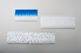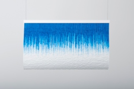EN Pinceau lamps consist of a led strip and an aluminum profile for the lighting part, a paper and nylon weaving diffuses light. Through inked, cut and hand-woven paper, blue creates different patterns punctuated by random reliefs. Three differents weavings are available: Orage, Ondée and Bruine.