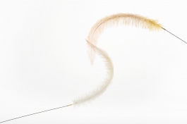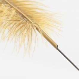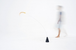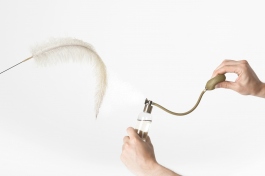 EN Nuto is a fragrance diffuser made in collaboration with plumassier Julien Vermeulen. It is a big contemplative pendulum consisting in a marble base, a motor, a carbon rod and a feather. The feather is made of ostrich fluff starched and tinted by hand, it naturally infuses the perfume that one sprays on it and diffuses it while swinging in a slow, hypnotic movement.