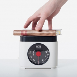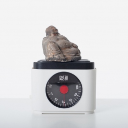 EN Ratio Radio is an augmented ready-made resulting from the combination of two objects: a radio and a kitchen scale. The radio is listened to by placing on its tray an object whose weight corresponds to a certain frequency. Each everyday object can then be assigned to a specific radio station, enriching it with a new, unexpected meaning.