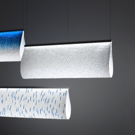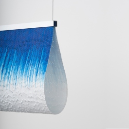 en Pinceau lamps consist of a led strip and an aluminum profile for the lighting part, a paper and nylon weaving diffuses light. Two sizes and three differents weavings are available: Orage, Ondée and Bruine.