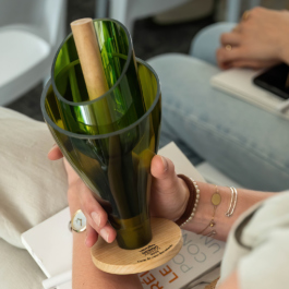FR Les participants au 14ème Verallia Design Award ont été invités à travailler sur le thème "Le verre pour vivre l'instant". Nous avons conçu un trophée pour l'occasion, composé d'une bouteille de Bordeaux et d'un magnum de Bourgogne, tous deux faisant partie du catalogue de standards de Verallia. Ils ont été découpés et montés sur une base en bois, leurs formes et couleurs distinctives donnant au trophée son identité.