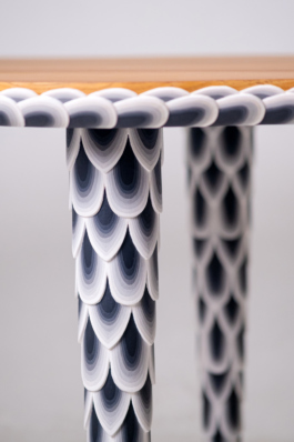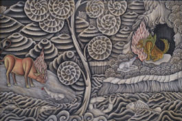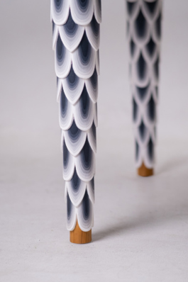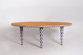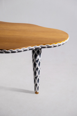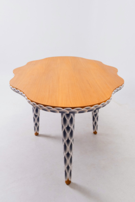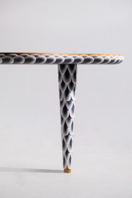 A sculptural piece, the Batuan table pays homage to Bali’s highly detailed sense of ornamentation, with poetic hand painting enhancing the expressiveness of volumes. A striking gradation of black and white sinuous lines characteristic of the traditional Batuan painting style is applied by the expert hand of Batuan artist Made Griyawan and his team on carved wooden surfaces creating a harmonious balance between ancient know-how and modern visual aesthetics.