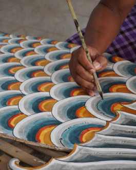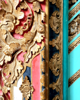 Materiaux: bois de teck, bois d’acajou, peinture acrylique