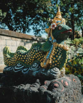 Pièce sculpturale, la table Batuan rend hommage au sens de l’ornementation méticuleux des balinais, avec une peinture à la main poétique venant sublimer l‘expressivité des volumes. Un dégradé saisissant de lignes noires et blanches sinueuses, caractéristique de la peinture de style Batuan, est appliqué par la main experte de l’artiste peintre Made Griyawan et son équipe sur des surfaces de bois sculpté, créant un équilibre harmonieux entre savoir-faire ancien et esthétique visuelle contemporaine.