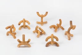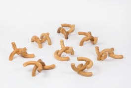 EN Connexions is a series of eight unique pieces, each composed of three yew arches which interlock to create an ever changing figure. These pieces were created on the occasion of the "Connection" exhibition celebrating the 10th anniversary of the Libre Artbitre association. They are like witnesses to the multiple collaborations that the association has generated during its ten years of existence. Each yew arch symbolizes the three key players in a project: the gallerist, the craftsman and the creator, each playing a role in the balance of the whole.