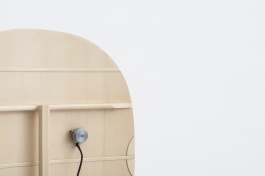 EN Luthia is a handcrafted version of the Surfaces Sonores project, it combines acoustic vibrators technology with the skills of a luthier (Romuald Provost). The object is designed from traditional manufacturing techniques: a spruce board is tensioned on a cross-bar structure, this assembly is mounted on a weighted base which gives stability to the object.