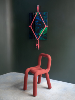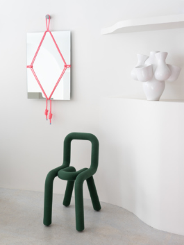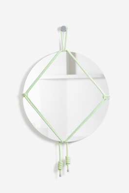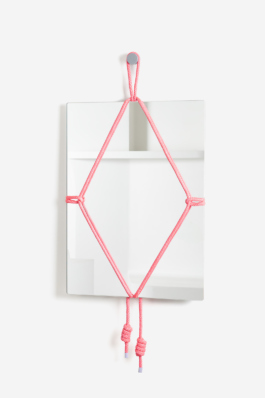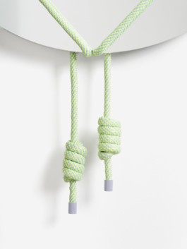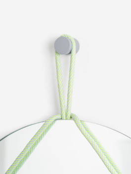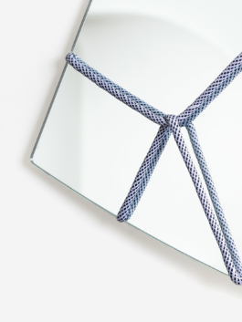 EN Shibari mirrors are inspired by both Japanese bondage techniques and the lifting techniques used in the construction industry. Without adding any superfluous gestures, Shibari mirror transforms its technical features into formal ones since it is nothing more than a faithfull and harmonious representation of its constructive principles and feasibility. Tying, tension, gravity and suspension alone would be enough to describe it. The positioning of its knots and interlacing is guided solely by the need for perfect balance and suspension at a single point. The specific braiding of the rope distributes the tension exerted by the weight of the mirror, leaving the whole thing to rely on the laws of its main condition: gravity.