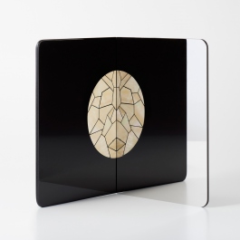 Materials: wood, lacquer, mother of pearl, polished stainless steel, magnets