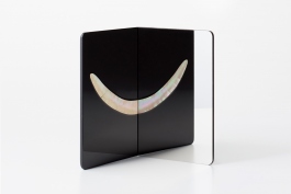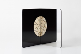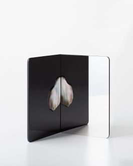 en Vison-Visu mirrors are the result of a collaboration with Sagaraden Nomura, a company specializing in raden (lacquer work with mother-of-pearl inlays). The mirrors consist of two lacquered wood panels assembled by magnets, on one side inlaid lacquer, on the other the mirror. Playing with reflection and symmetry, the pieces of seashells give birth to mysterious figures, blending organic and geometric shapes. The project highlights the finesse and uniqueness of this know-how and the natural beauty of the materials.